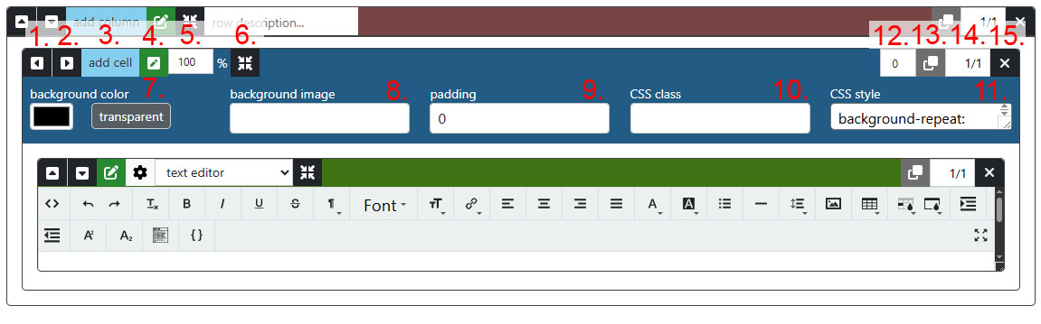 The column can be deleted with this button. The last column cannot be deleted. There must always be at least one column.
