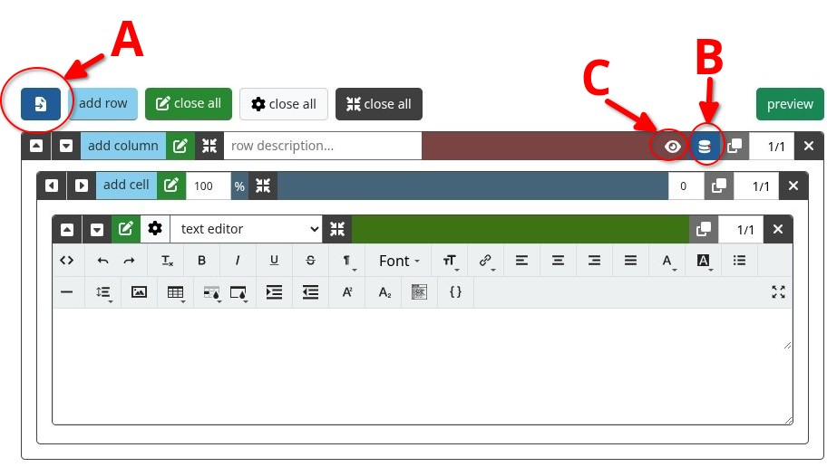 If you want to duplicate a row on the same page, use the “duplicate this row” button (13).